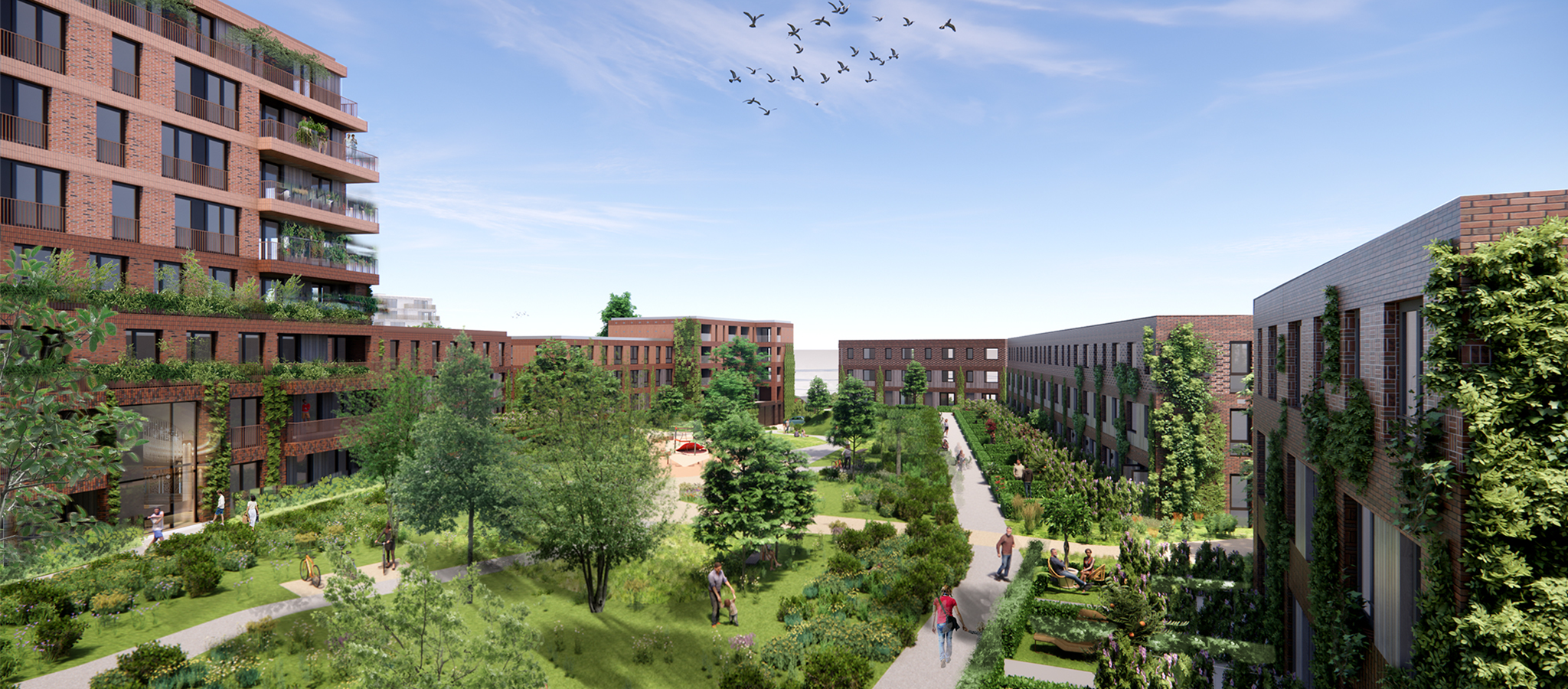 Een rustige straat zonder auto’s, waar kinderen veilig spelen tussen het groen: zie je het al voor je? Waar je de dag begint met een kop koffie op je terras en ’s avonds nog een rondje maakt door het groene park, midden in de wijk. In Olympia Gardens woon je in een gloednieuwe stadswijk in Almere Poort – groen en stedelijk tegelijk.
